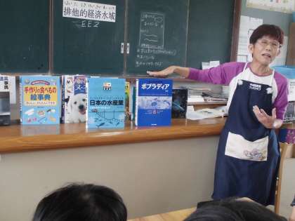 その日の朝刊の見出しの『排他的経済水域』という言葉をきっかけに,「この言葉の意味を調べるためにはどうしたらいいでしょう?」と,学習が始まりました。