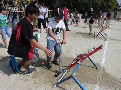 また,午後はおやじの会の方にお世話になって,恒例の「水ロケット飛ばし」も楽しみました。