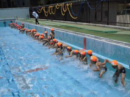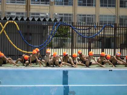 そんな中,1,2年生が今シーズン初めてプールに入りました。