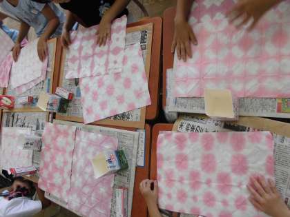 それぞれのお気に入りの模様を使って,丁寧に作りました。子どもたちは,「お花でこんなことができるんだなあ。」「大切なものを入れて飾るのが楽しみだな。」ととても嬉しそうでした。これからも自然のものを使って,生活を豊かにできる経験をたくさんできるようにしていきたいと思います。