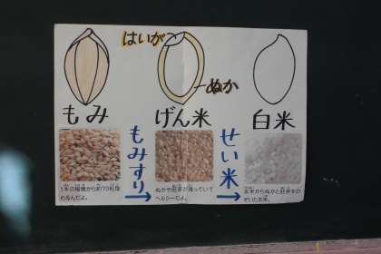 稲や玄米・米粉なども触って,子ども達は興味深々。お米が色々な姿に変身することも知りました。