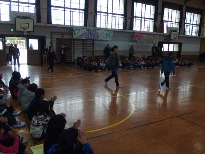 大きな拍手の中,6年生が入場し,舞台に座りました。