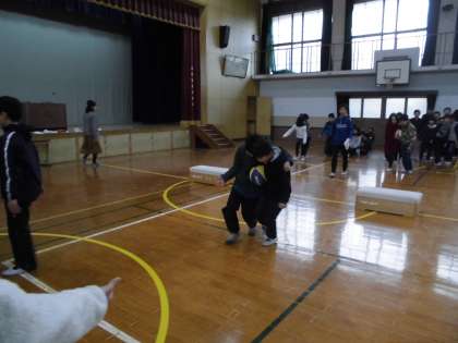 この日は,全校児童に“さらに仲良くなってもらいたい”そして“みんなでいい思い出を作ってほしい”という思いを込めて,6年生が「はさんで運んでボールリレー」を計画し,中間休みに実施してくれました。