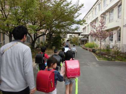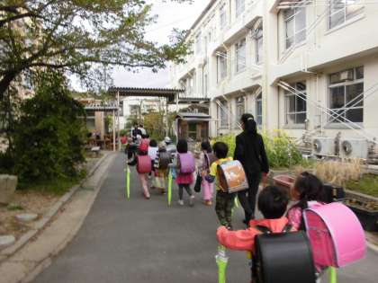 お友達と仲良く手をつないで帰ります。