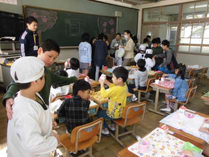 「先生,今日の給食,とっても楽しみ!」と,この日を心待ちにしていた子も多くいました。