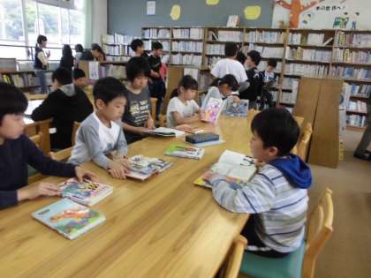 椅子に座ってさっそく読書を始める子,どの本を読もうか選んでいる子,借りる本が決まってカウンターに並ぶ子など,図書室は大盛況となりました。