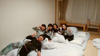 修学旅行の大きな楽しみの一つが,友達と一緒に寝ること。