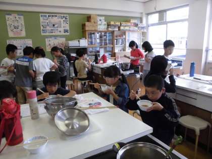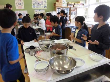 家庭科調理室では,当日と同じメニューの“すき焼き風煮”を作りました。