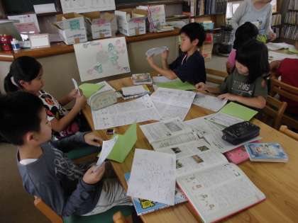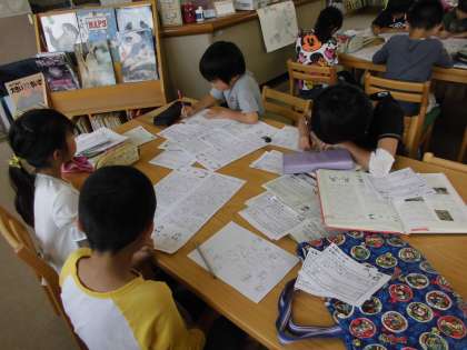 本で調べたことを,「ここが大事」「どこを書こうかな」など,まとめて書こうと熱心に調べていました。