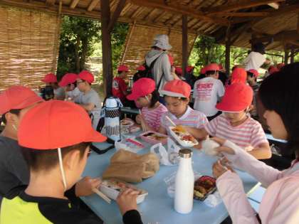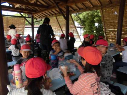 お昼は,あづまやでおうちの方に作っていただいたお弁当をいただきました。