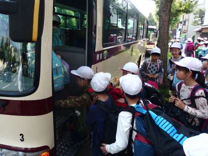 バスで,楽只小学校の5年生のみんなと合流し,花背に向かいます。