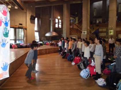 まず,楽只小学校の仲間と一緒に入所式をしました。