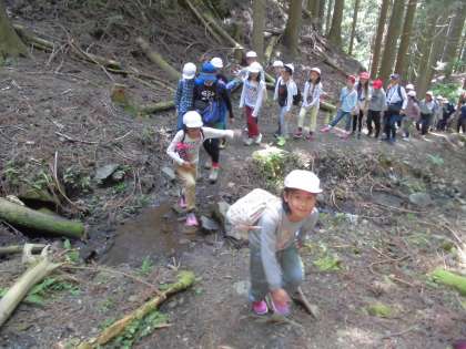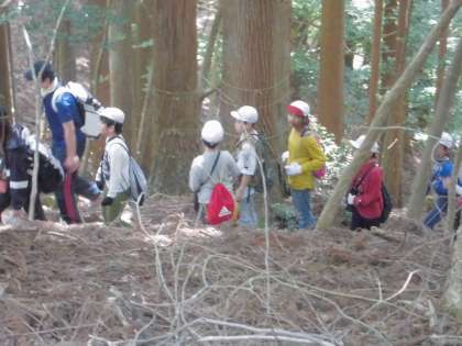 急な山道で息が切れそうになりながらも「もうちょっとでお昼!」「あきらめずに頑張ろう!」と,互いに励まし合いながら頂上を目指します。