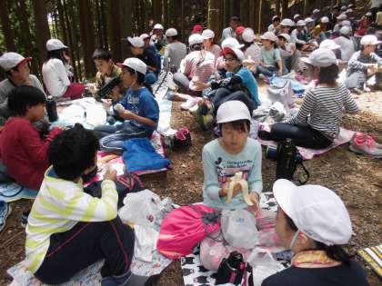 途中の休憩ポイントで,朝,食堂で受け取ったお弁当をいただきました。