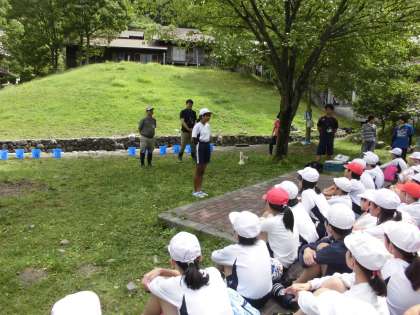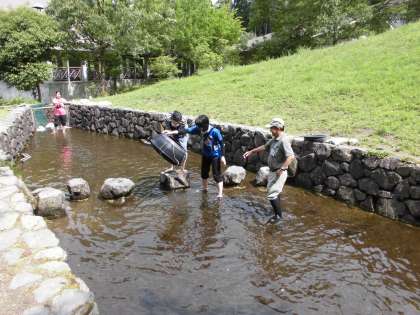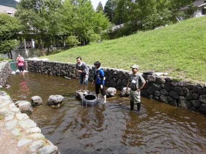 昨夜の雨で魚つかみをする池が濁ってしまったので,早朝より引率者と山の家の所員さんに池の掃除をお世話になりました。
