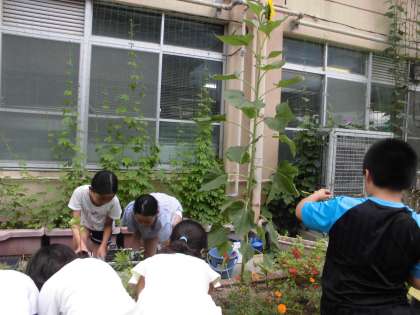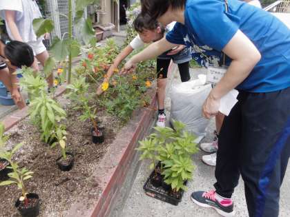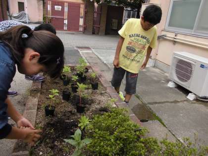 今日,環境委員会の子どもたちが,花壇の雑草を抜き,ホウセンカとコスモスを植えてくれました。