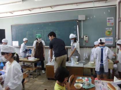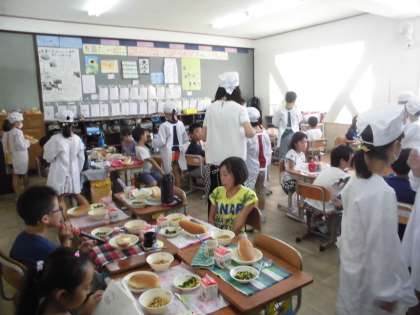 さらに給食も一緒に食べました。