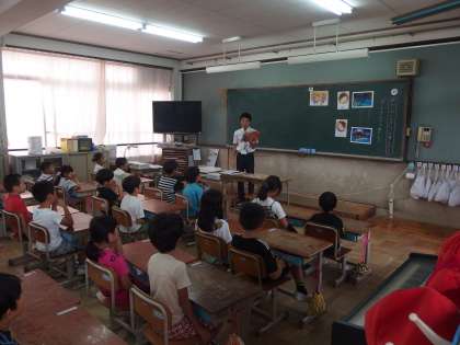2年生は,「タヒチからの友だち」というお話を読み,アイトというタヒチの少年との関わりから,言葉は通じなくても遊びやじゃんけんなどのゲームを通して,他国の人と関わることの良さを知り,親しもうとする気持ちが高まる授業となりました。
