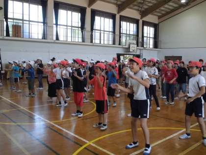 全校児童もその熱意に応えるかのように,ダンス練習を頑張りました。