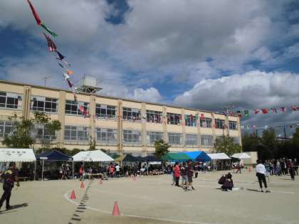 晴天に恵まれた今日,運動場で“紫野学区民体育祭”が開催されました。