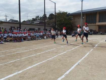子どもたちは,「赤組いけー!」「白組頑張れー!」と熱い声援を送り,保護者・地域の方々からも,温かい声援と拍手をいただきました。