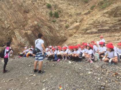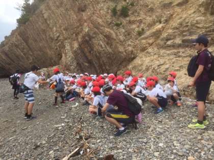 宮崎浜は,海の生き物以外に地層についても学習できます。