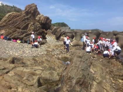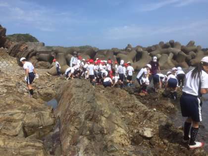 岩場に潜んでいる海の生き物の命を大切にしながら,観察します。