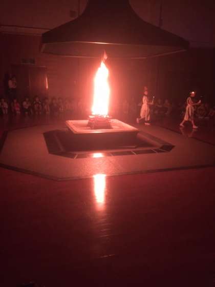 初めに,火の神から3つの力が授けられました。一つ目は,友情の火。二つ目は,自然の火。そして,三つ目は,感謝の火です。みんなで一つの火を囲んで,おおいに盛り上がりました。数々のスタンツやアクションソング。子どもたちが生き生きと活動する姿と,にこやかな表情が印象的なファイヤーでした。