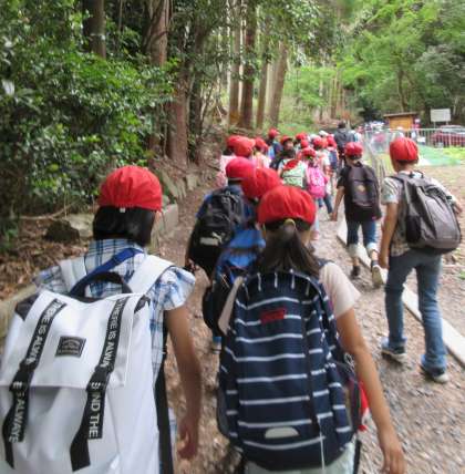 3年生は,大文字山に登頂しました。険しい道もありましたが,力を合わせて,「あともう少しだよ!」「大丈夫?」「がんばれ!」と互いに声をかけあったり,励ましあったりしていました。