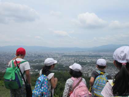 また登頂後,京都市の東西南北を確認したり,京都タワーや平安神宮,船岡山,そしておおよその位置ですが,紫野小学校を見つけることもできました。