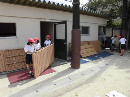 12日(水)の5・6時間目に,5・6年生がプール掃除を行いました。5年生は,主に更衣室や腰洗い槽,プールサイドなどの掃除を担当しました。