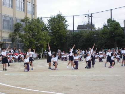 1・2年生の団体演技「紫野ちゃーびらさい☆2019」では,紫色の腰布を巻き,手には四つ竹を持って元気いっぱいで演技しました。観ている人たちからは,「かわいい!」という声がたくさん聞こえてきました。
