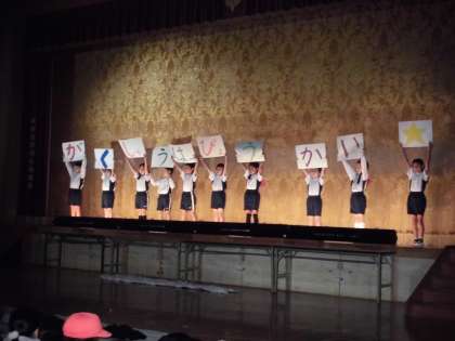 1年生は,「はじめのことば」を言いました。あいうえお作文のようにまとめて,上手に発表していました。