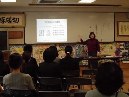 子どもの携帯情報通信機器(スマートフォン・ゲーム機等)利用の最新の実態を知り,その危険性や依存性などについてお話いただきました。