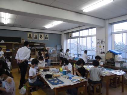 5年2組は,図画工作で「ビー玉大ぼうけん」という題で,板を加工しました。形や色を工夫しながら作りました。糸鋸も使いました。