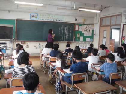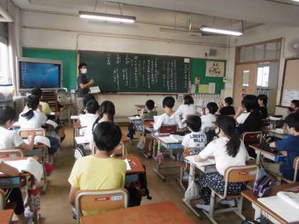 5年生は,両クラスとも国語の「和語・漢語・外来語」について学習しました。それぞれの語が何に由来するのか,どのような意味をもつのかについて読み取りました。使い方についても確かめました。