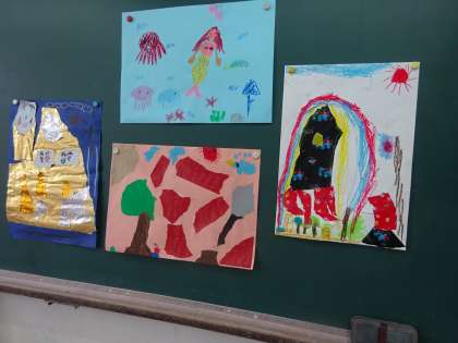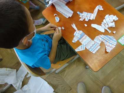 紙をやぶいたり,ちぎったりしてできた形が,何に見えるのかを考えて,表現しました。