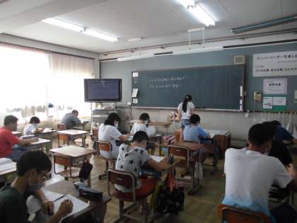 6年2組は,ジョイントプログラムに向けて,各々の課題に取り組みました。自学自習をねらいとしていることなど,5年生のことを振り返りながら取り組みました。
