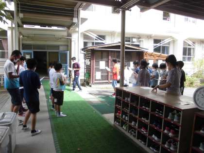 体育参観の学習に向けて,応援団が結成されました。先生から説明を受けた後,応援の文面や声の出し方などを確認しました。ソーシャルディスタンスには十分配慮しながら,活動を盛り上げたいと一生懸命の練習が始まりました。