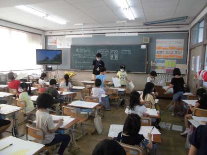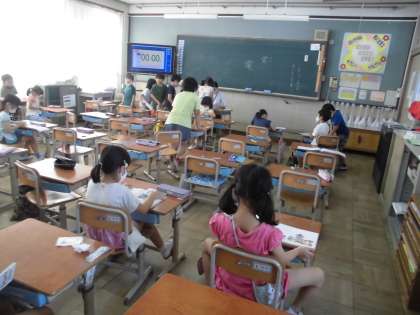2年1組は,書写の学習をしました。よい姿勢で,「とめ」や「はね」,「はらい」に注意しながら書きました。「電」という字は,意外に難しいと感じました。