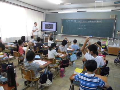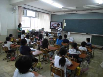 3年2組は,PICNIK(国際交流)学習で,先生をお迎えして韓国のことを学びました。写真で料理や服装について確かめた後で,「ダックチ」という遊びも教わりました。