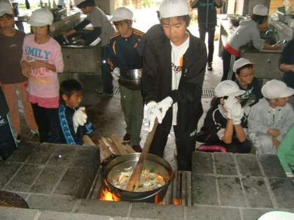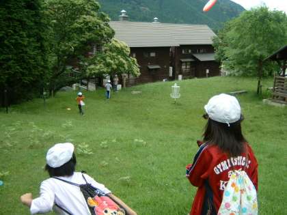 5年生が,緑に包まれた花脊山の家で野外活動を行いました。目標の一つである,「5分前行動」がしっかりできましたので,オリエンテーリング,野外炊事,フライングディスクゴルフ,冒険アスレチック,キャンドルファイア,自然観察,テント泊などを楽しむことができました。