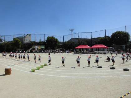 3年生は,リレーとオリジナル走を行いました。オリジナル走前には,華麗なダンスを踊り,競技中には,縄跳びを飛んだりフラフープを投げたりしていました。