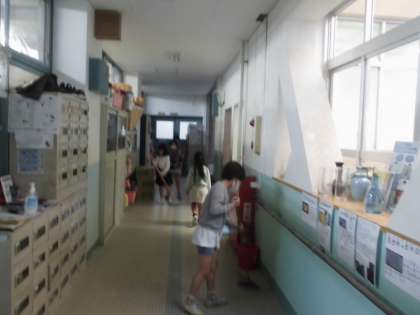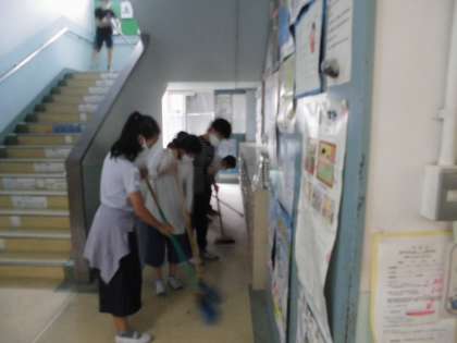 職員室前の廊下では,3年生が隅々まで一生懸命掃いていました。友だちと協力しながら活動する姿も印象的でした。