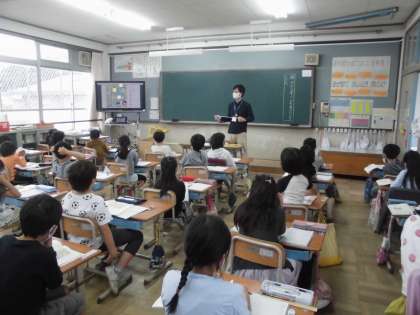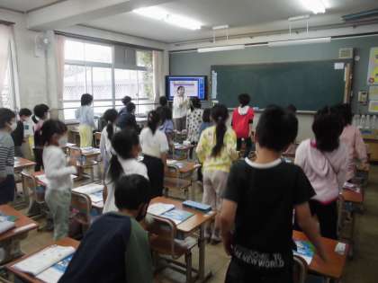 2年1組は,音楽科で,「いるかは ざんぶらこ」という曲を学習しました。今日のテーマは,3拍子です。手で拍子を打ったり,足踏みをしたりしながら,「タン,タン,タン」のリズムを感じました。