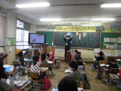 4年2組は,総合的な学習の時間に,環境について勉強しました。「エコライフチャレンジ!」を合言葉に,今の地球環境のことを知ったり,日の出・日の入時刻と1日の生活リズムの関連を考えたりしました。