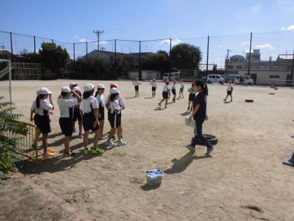 3年2組は,体育科で,ハンドベースボールを行いました。打ち方,走り方,守り方等を確かめながらゲームを進めました。進めるうちに,ベースボール型スポーツのルールについても少しずつわかってきました。