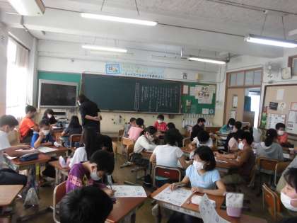 5年1組は,道徳で,「のび太に学ぼう」というテーマで学習しました。四コマ漫画の内容を吟味し,お話のまとまりを捉えながら,のび太のよさをたくさん見つけ,グループで交流しました。