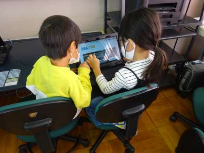 コンピュータ室で,タブレットの使い方を学習しました。