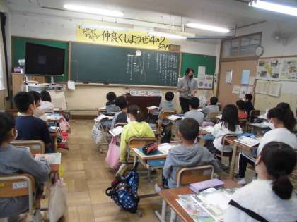 4年生は,道徳で,「朝がくると」というお話を読んで,身近なことに感謝の心を向けるとはどのようなことかを考えました。初めに,自分たちの日常生活を振り返りました。ご飯を食べる,眠る,勉強する,運動する等は,当たり前のことという意見が集まりました。そこで,「ぼくが作ったのでもない」という言葉に焦点を当てると,確かに自分たちが,「支えられている」ということに気付きました。そして,「人・もの・こと」に対して,「ありがたい」という思いが膨らんできました。最後に,思ったことを交流しました。